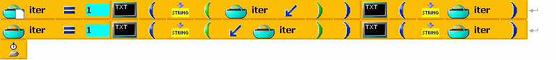 | Nastaví do proměné i hodnotu 1. Poté vypíše na obrazovku hodnotu proměné i, sníží jí o 1 a opět vypíše hodnotu. Poté nastaví do proměné i znovu hodnotu 1, sníží jí o jednu a hodnotu dvakrát vypíše na obrazovku. | | |