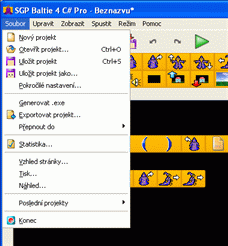 Při prvním ukládání, nebo při zvolení Uložit jako... si můžete v políčku Uložit jako typ vybrat volbami Baltíkův projekt a Baltíkův program. Většinou se používá projekt, ale pokud chcete program spustit i v interaktivním režimu, zvolte Baltíkův program (.sgpbpr).