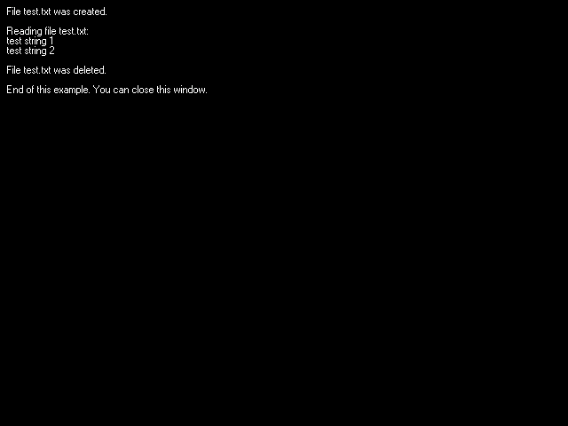 |  | | Write (For modes 2D, 3D, Console) |  Show exampleHide example | | Writes given data to the file. | |