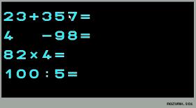 Vytvor si scénu, ktorá predstavuje tabuľu s príkladmi z matematiky (scénu si ulož pod názvom rozvrh.s01).