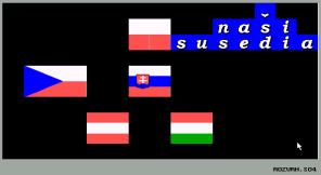Počas hodiny zemepisu sa učíte o našich susedných krajinách. Určite vieš ako sa volajú, ale vieš aj ako vyzerajú ich vlajky? Skús vytvoriť schematické rozloženie vlajok štátov susediacich so Slovenskom podľa svetových strán (scénu si ulož pod názvom rozvrh.s04).