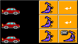 Kapitola 7: Pohyblivé animácieOdporúčaná časová dotácia3. - 5. ročník: minimálne 3 – 4 hodiny Nové pojmyfázy, animácia *** Skúste si opäť hru, s ktorou sme začali režim Programovať. Nachystajte si niekoľko čistých papierov a niekoľko papierov, na ktorých bude nakreslené autíčko. Opäť určite jedného žiaka, ktorý bude Baltíkom – Vykonávateľom a druhého, ktorý bude Programátorom. Programátor musí pomocou príkazu urob krok a príkazu vyčaruj autíčko a vyčaruj prázdne miesto dosiahnuť, aby po danej dráhe prešlo autíčko postupne všetkými políčkami a aby sa na dráhe nevyskytlo naraz viac ako jedno. Je potrebné si uvedomiť, že doteraz sme vytvárali iba animácie na jednom mieste. Teraz by sme chceli vytvoriť pohybujúcu sa animáciu, čo je už náročnejšie. Deti musia pochopiť, že okrem striedania fáz je potrebné zabezpečiť pohyb postavičky alebo predmetu. Keďže deti musia najprv dobre zvládnuť pohyb predmetu, a až potom môžeme tento nový poznatok spojiť s predchádzajúcimi, začali sme úlohou, kde sa predmet hýbe bez toho, aby sme museli použiť fázy. Po skončení úlohy Programátora a Vykonávateľa by si už mali deti uvedomovať hlavnú podstatu pohyblivej animácie – prv, ako vyčarujeme predmet na novom mieste, musíme ho nechať z predchádzajúceho miesta zmiznúť. Úloha č. 1:Vytvor program na pohyb autíčka. *** Deti sa najprv pokúsia zopakovať program, ktorý ste v triede vyskúšali. Prvý výsledok by teda mohol vyzerať napríklad takto: